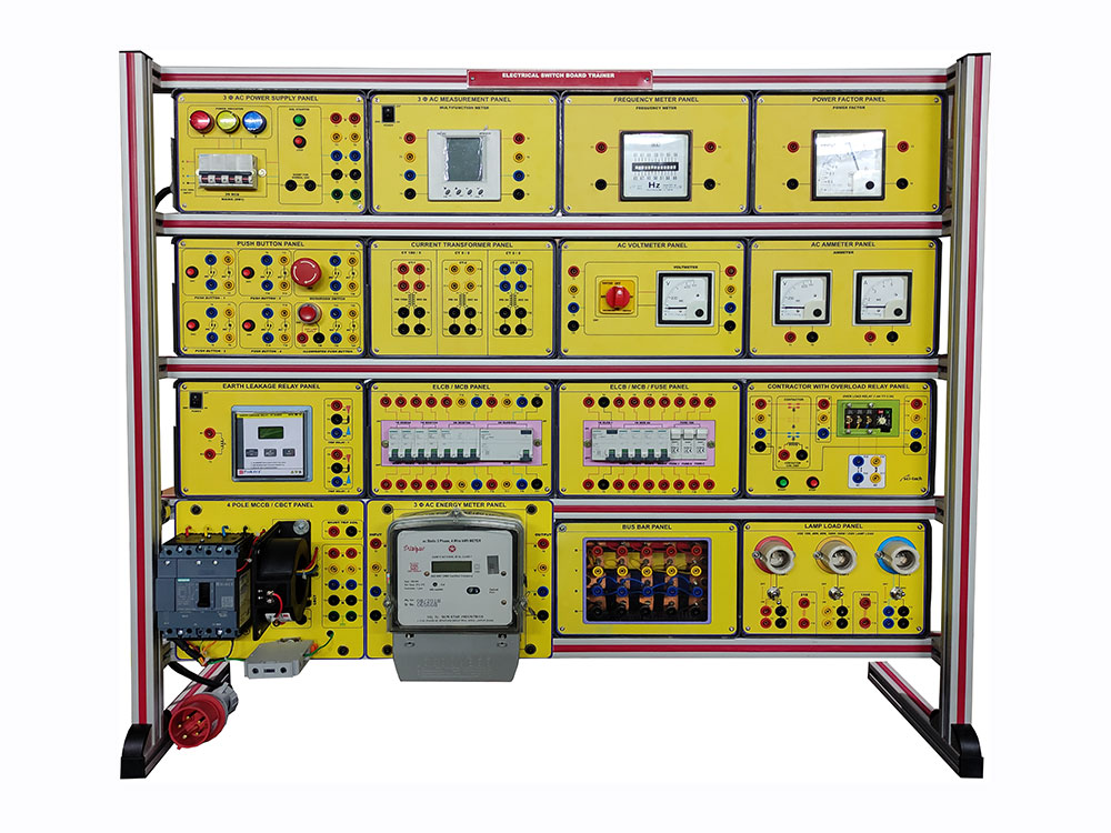 Supplied with but not limited to 3 Phase AC Power Supply, 3 Phase AC Measurement, AC Meter, Circuit Breaker, Switches, Industrial Socket, 1Phase AC Energy Meter, 3Phase AC Energy Meter, Bus Bar, Lamp Load etc.