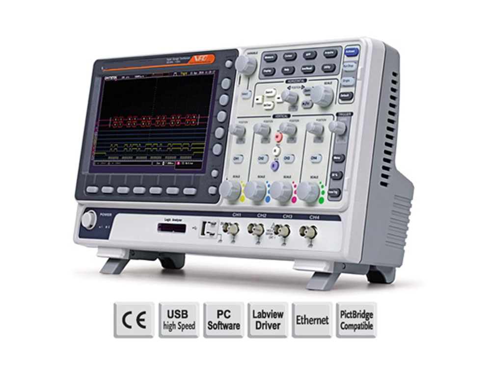 MSO-2000EA equips with a 16-channel logic analyzer and a dual channel 25MHz arbitrary waveform generator