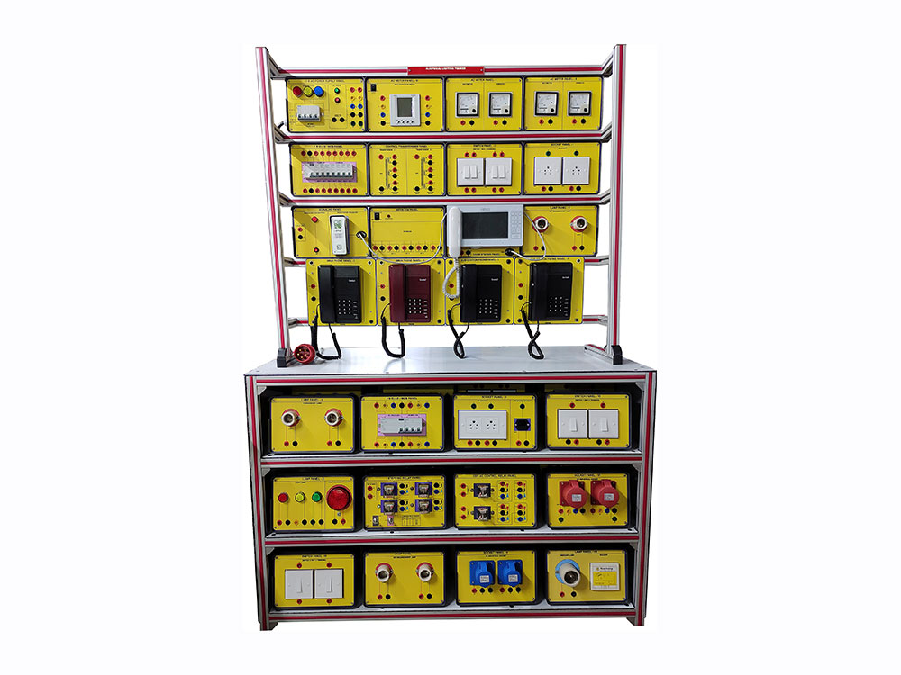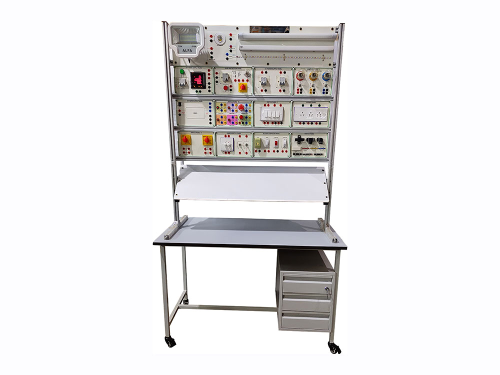 Supplied with but not limited to 1 Phase AC Supply, 1 Phase AC Measurement , ELCB Protection, Switch & Socket , Dimmer/Switch, Buzzer/Lamp/Fuse, Lamp Load, Display, Lights and Fixtures, Wiring practice board etc.