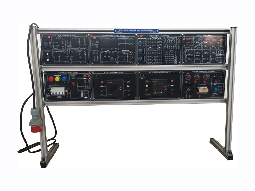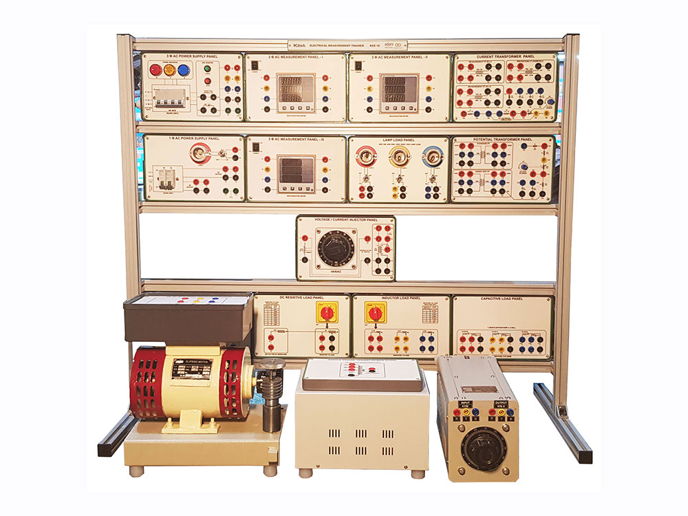 Supplied with but not limited to 3 Phase AC Power Supply, 3 Phase AC Measurement, 1 Phase AC Supply Panel, AC Voltmeter Panel, AC Ammeter Panel, Milliohm (V-I method), Lamp Load, Single Phase Transformer, Three Phase Transformer, AC/DC Resistive Load etc.
