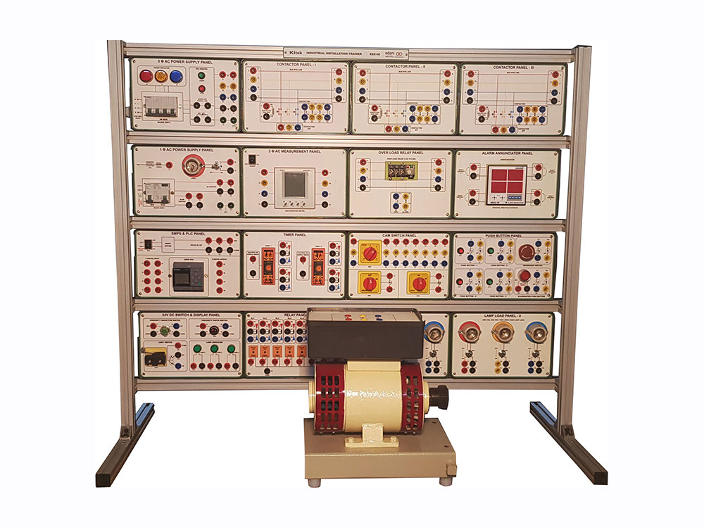 Supplied with but not limited to 3 Phase AC Power Supply, 3 Phase AC Measurement, AC Meter, Circuit Breaker, Switches, Industrial Socket, 1Phase AC Energy Meter, 3Phase AC Energy Meter, Bus Bar, Lamp Load etc.